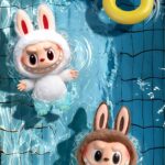 Splash into fun with this vibrant and cheerful wallpaper featuring two adorable Labubu characters from the “Monsters” series enjoying a swim in a bright blue swimming pool! One Labubu, in a fluffy white bunny outfit, floats gracefully on the surface, while the other, in a brown costume, is also seen enjoying the water. The pool’s tiled bottom is visible, and ripples from their movements create a dynamic, refreshing look. A bright yellow inflatable ring adds to the summery, playful atmosphere. This wallpaper is perfect for bringing a dose of sunshine, cuteness, and relaxation for fans of Labubu and Pop Mart to their screen.