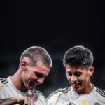 This powerful photo perfectly encapsulates the camaraderie and bright future of Real Madrid C.F. It features two of the club’s most exciting young talents, Nico Paz and Arda Güler, sharing a genuine moment of post-match celebration. Wearing the classic white kit, their smiles reflect the youthful enthusiasm and hunger for success that defines the team’s new era. This image is a fantastic tribute to the emerging stars who are expected to carry on the legacy of the “Los Blancos” dynasty. It’s a must-have wallpaper for supporters who are passionate about the future of football at the Santiago Bernabéu.