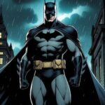 Embrace the night with this powerful, classic comic book wallpaper of the Dark Knight, Batman. The iconic hero stands ready for action on a Gotham rooftop in a dramatic pose, with rain pouring down under a dark, stormy sky. The gritty, muscular art style and the illuminated city buildings in the background capture the classic noir atmosphere of the DC universe. Perfect for fans of superheroes and a dark, heroic aesthetic. 🦇 🌧️