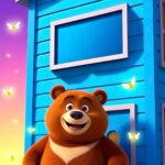Bring a burst of warmth and charm to your screen with this endearing 3D animated wallpaper. It features a cheerful, fluffy brown bear standing happily outside a bright blue, stylized house under a beautiful twilight sky of pink, orange, and purple. Glowing yellow fireflies (or butterflies) float around the scene, adding a magical, cozy glow. This whimsical image is perfect for lovers of cute, child-like animation and sweet, comforting scenes. A true mood-lifter for any phone! 🐻✨