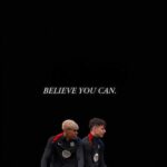 This simple yet powerful wallpaper captures two young Spanish football stars, Lamine Yamal and Pedri, taking a moment to rest during training. They are sitting side-by-side on a cooler, heads down in focused contemplation against a stark black background. The inspiring phrase “BELIEVE YOU CAN.” floats above them, making this a perfect, understated background to motivate anyone pushing their limits and striving for greatness.