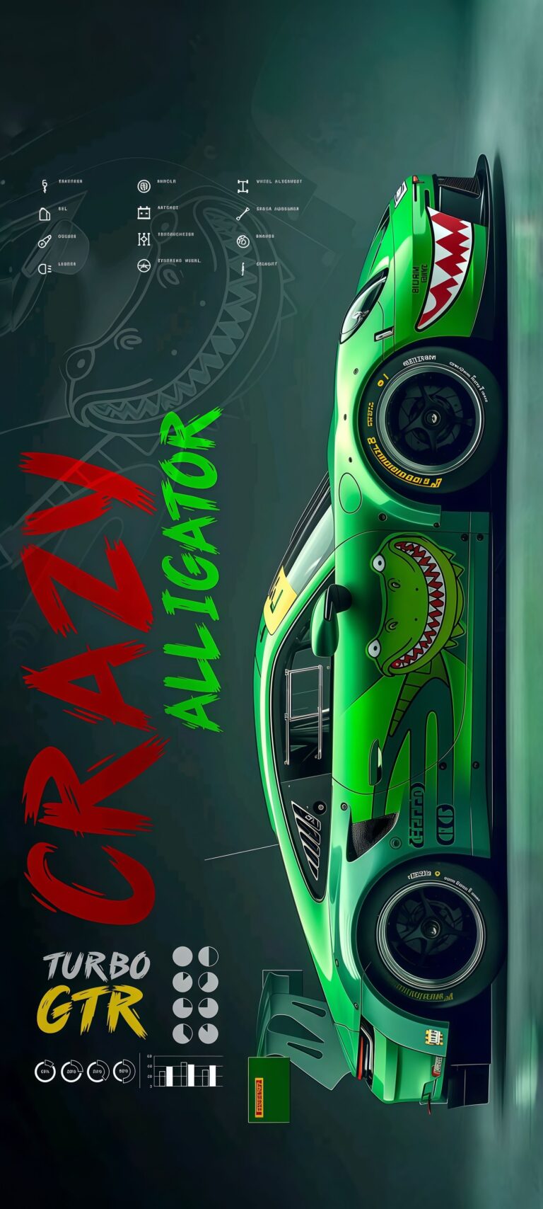 Get ready for some prehistoric power with the legendary “Rexy” Porsche! This is a fantastic digital illustration of the fan-favorite race car, the Porsche 911 GT3 R (Type 992), campaigned by AO Racing. It’s instantly recognizable by its wild, aggressive lime green dinosaur livery, complete with stylized teeth on the front fascia and tiny T-Rex arms on the doors. The dark, intense background makes the vibrant color pop, capturing the car’s aggressive on-track attitude. This is the perfect, one-of-a-kind wallpaper for any fan of IMSA or WEC racing!