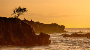 Dive into a world of natural wonder with this incredible wallpaper. The image showcases a pristine bay at night where bioluminescent plankton in the water emit a vibrant, electric blue glow along the coastline. Above, the deep night sky is illuminated by the dense, sprawling beauty of the Milky Way galaxy and bright stars. It’s a truly mysterious and magical oceanic landscape.