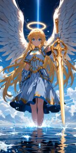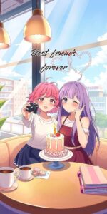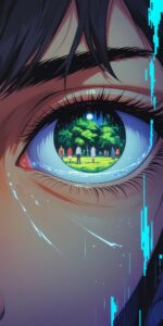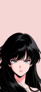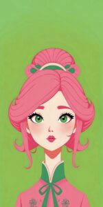 Dive into a world of color with this vibrant wallpaper! The character’s lush, bright green hair is the star of the show, falling around her shoulders in a dynamic sweep. Her expression is gentle and composed, with a delicate look that complements the overall light and airy feel of the image. This style is often found in modern fantasy anime and character designs that aim for a bright, otherworldly beauty. A refreshing and unique choice for a phone background.
