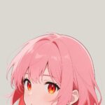 This charming wallpaper captures a sweet, innocent look with a character featuring a bright, playful pink hairstyle. Her gaze is soft and a little curious, with a subtle blush adding to her gentle appearance. The neutral, pale grey background allows the vibrant pink and warm eye colors to stand out without being overwhelming. It’s a fantastic, uplifting image for anyone who loves pastel colors and the lighthearted, friendly style of modern slice-of-life anime.