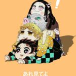 A super cute and colorful fan-art wallpaper featuring the main Demon Slayer characters—Tanjiro, Zenitsu, Inosuke, and Nezuko—all stacked up in their adorable chibi forms on a warm orange background. Perfect for fans of Kimetsu no Yaiba looking for a fun, kawaii aesthetic lock screen.