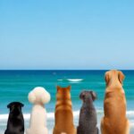 Bring a smile to your face with this adorable wallpaper featuring five different dog breeds—a Black Lab, Poodle, Shiba Inu, Scottie/Terrier, and a Golden Retriever—all lined up and looking out at the vast, turquoise ocean and bright blue sky. This whimsical illustration captures the simple joy of a day at the beach and is perfect for any dog lover. The bright colors and cute scene make for a cheerful and uplifting mobile background. Illustration, Whimsical