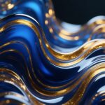 Indulge in luxury with this striking abstract Wallpaper. It features a continuous flow of highly polished, deep royal blue liquid waves that are beautifully outlined and highlighted by shimmering lines of bright gold glitter. The contrast between the rich, cool blue and the warm, sparkling gold creates a sophisticated, elegant, and dynamic effect. The surface looks incredibly glossy, like an expensive lacquer or rippling liquid silk. 💙👑