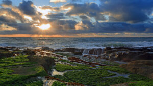 Ocean Waves Sunset Aerial View Vibrant Wallpaper