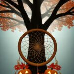 Capture the cozy yet mystical essence of the season with this unique Halloween wallpaper. A beautiful dreamcatcher hangs from the trunk of a massive tree, its leaves blazing with the warm colors of autumn. At the base, three brightly glowing jack-o’-lanterns add a spooky, festive touch to the rustic, fall-themed scene. It’s a perfect backdrop for a phone that blends seasonal warmth with Halloween magic.