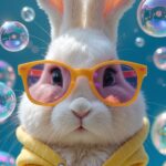The Adorable Bunny in Yellow Hoodie and Sunglasses Wallpaper is pure, unadulterated charm. This high-quality, 3D character art wallpaper features a fluffy white rabbit with big, inquisitive eyes and large pink ears, looking incredibly cool in a bright yellow hooded sweatshirt and a pair of orange-rimmed sunglasses. The playful blue backdrop is filled with floating, rainbow-tinged bubbles, creating a fun and adorable aesthetic that makes an excellent, cheerful phone wallpaper. 🐰😎
