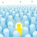 The Stand Out Glowing Yellow Figure in Crowd Wallpaper is a simple yet powerful piece of conceptual art. This wallpaper beautifully illustrates the idea of individuality and uniqueness. A vast, dense crowd of light blue, faceless figures stretches to the horizon, but centered in the middle is one solitary figure that glows with bright yellow light, radiating an aura of distinction. It’s a clean, minimalist, and inspiring wallpaper design.