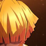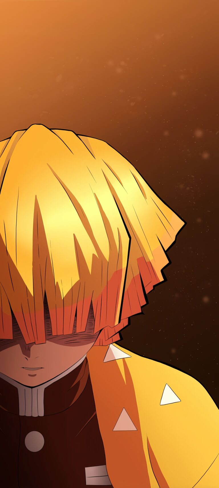 Demon Slayer Zenitsu Agatsuma Close-up Anime Wallpaper captures the powerful yet timid Demon Slayer Corps member, Zenitsu Agatsuma, in a dramatic pose. The wallpaper focuses on his bright, unmistakable yellow and orange-tipped hair that typically covers his eyes, set against a warm, gradient brown and orange background that mirrors his lightning-based breathing style. This vivid anime wallpaper is a must-have for fans of Demon Slayer: Kimetsu no Yaiba, showcasing one of the main protagonists in a moment of intensity, perfectly capturing the show’s artistic style.