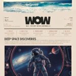 Deep Space Discoveries Astronomy Wallpaper combines a serene top image of a sunny ocean with a detailed bottom section featuring an astronaut viewing a nebula and planets from a spacecraft. This graphic style wallpaper, with its prominent “DEEP SPACE DISCOVERIES” heading and celestial icons, is ideal for space and adventure lovers. Type: Informational Graphic/Space