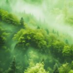 Emerald Green Forest Foggy Mountain Wallpaper captures the essence of a serene, untouched wilderness. This piece is dominated by lush, vibrant green foliage of numerous evergreen and deciduous trees, creating a stunning vertical canvas. A dense fog or mist weaves through the canopy and slopes, giving the scene an ethereal, calming atmosphere. Distant, rugged mountains subtly pierce through the haze. This artwork is a beautiful, calming choice for anyone seeking a high-quality, nature-inspired wallpaper to bring tranquility to their screen. Type: Digital Nature Art