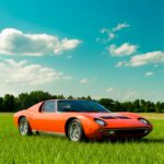 The Orange Lamborghini Miura P400 Classic Sports Car Wallpaper celebrates a true automotive masterpiece. The Miura, often credited with inventing the modern supercar, looks magnificent in this vibrant orange color. Its smooth, curvaceous body and iconic design are perfectly framed by the lush green grass and the bright, clear blue sky. This wallpaper beautifully emphasizes the car’s mid-engine layout and timeless elegance, making it a stellar choice for classic car aficionados. Absolutely gorgeous design. 🍊🌾