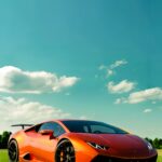 The Orange Lamborghini Huracán Modern Supercar Wallpaper perfectly captures the contemporary Italian supercar experience. This low-slung, aerodynamically aggressive orange Lamborghini Huracán, complete with a rear wing, sits dramatically on the vibrant green grass. The dynamic lines and sharp angles of the car are emphasized by the bright sunlight, contrasting beautifully with the serene, natural backdrop. This wallpaper is all about speed and modern Italian design flair.