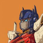 Transformers Optimus Prime G1 Wallpaper features an imposing figure, likely the evil clone Nemesis Prime or the Decepticon Scourge. The classic Prime-like chassis is rendered in dark blue and grey with a highly detailed, weathered, and distressed aesthetic. The figure is captured pointing a commanding finger with fierce red optics, set against a brooding, dark maroon background. This high-impact vertical wallpaper is perfect for fans of darker, more edgy Transformers art. For the Decepticons!
