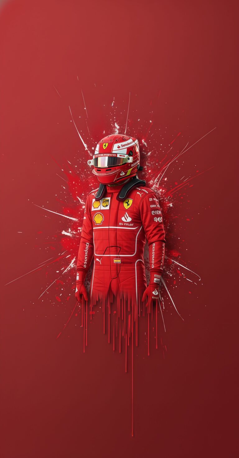 The Charles Leclerc Ferrari Red Wallpaper is a stunning piece of digital art designed to capture the intensity and speed of Formula 1. This dynamic wallpaper features Charles Leclerc in his signature Scuderia Ferrari race suit, set against a vibrant red background with a dramatic white paint splatter and drip effect. It perfectly embodies the passion of the Ferrari team and is an absolute must-have phone wallpaper for fans of the Monegasque driver. 🏎️🔥