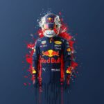 The powerful Max Verstappen Red Bull Navy Wallpaper celebrates the reigning World Champion with an aggressive, artistic style. This wallpaper showcases Max Verstappen in his dark navy Red Bull Racing suit and helmet, expertly contrasted by a striking red and white paint splatter on a deep blue background. It’s an ideal phone wallpaper for dedicated members of the Orange Army looking to show their support for the dominant driver. 🏆🔵