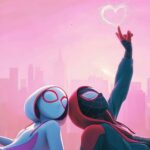 This breathtaking Miles Morales Gwen Stacy Pink Sunset Wallpaper captures an iconic, romantic moment between the two Spider-Verse heroes against a vibrant pink and purple cityscape. The two characters are leaning back-to-back, with Miles reaching up to touch a glowing, web-like heart, symbolizing their connection across the multiverse. This stunning and emotional wallpaper is a must-have phone wallpaper for fans of Spider-Man: Across the Spider-Verse and the beloved duo. 🕷️🌆