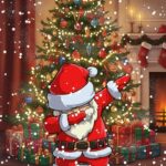Dabbing Santa Claus Christmas Fireplace Wallpaper is a hilarious and modern take on a holiday theme. A chunky, cartoon Santa Claus is captured mid-dab, standing in a snowy indoor scene. Behind him, a beautifully decorated Christmas tree, a mantle with stockings, and a warm, glowing fireplace create a perfect holiday atmosphere. This lighthearted wallpaper is sure to be a hit with people of all ages during the festive season. 🎅🎉