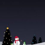 The Minimalist Snowman Christmas Winter Night Wallpaper offers a tranquil and beautiful view of a snowy Christmas Eve. The scene is dominated by a clear, dark blue-black, star-filled night sky, which provides a dramatic contrast to the snow-covered ground below. In the foreground, a large snowman wearing a red hat stands with two smaller companions, one holding a candy cane. Silhouetted Christmas trees are lit with warm and cool lights, completing this peaceful, low-light winter wallpaper design. This simple yet elegant image is perfect for a sophisticated seasonal look. 🌠☃️