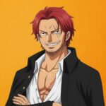 One Piece Shanks Red Haired Emperor Wallpaper showcases the powerful Yonko, Red-Haired Shanks, in a classic, smiling portrait. This vertical wallpaper captures his recognizable features: his signature red hair, the three scars over his left eye, and his charismatic, confident demeanor. His left arm, which he sacrificed for Luffy, is concealed as he poses with his right arm crossed over his chest. Set against a bright, solid orange background, this artwork is in the classic One Piece anime style, making it an appealing wallpaper choice for fans of the influential character. 🏴‍☠️✨