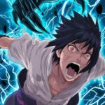 The Sasuke Uchiha Angry Chidori Anime Wallpaper captures a moment of raw power and intense emotion from the Naruto series. Sasuke Uchiha is depicted mid-battle, his Sharingan or perhaps the early stages of his Cursed Mark active, radiating vibrant blue lightning that suggests the use of his signature Chidori. A huge, shadowy, monstrous black hand (likely a visual representation of his cursed seal power, like the form he takes after facing Orochimaru) looms over him, creating a dramatic and high-stakes scene. This dynamic image is a must-have wallpaper for any dedicated fan of the Uchiha clan and the exciting battles of the Naruto universe. 💥🔥