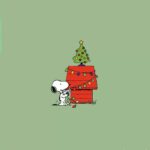 The Minimalist Snoopy and Woodstock Christmas Tree Wallpaper is a heartwarming and beautifully simple tribute to the classic Peanuts comic strip. The illustration shows Snoopy, sitting on his bright red doghouse, attentively wrapping a string of colorful Christmas lights around a small, decorated Christmas tree perched on the roof. The image maintains the simple, hand-drawn charm of Charles Schulz’s style. The central figures are set against a vast, uncluttered background of soft sage green, allowing the focus to remain purely on the charming holiday task. This elegant and nostalgic wallpaper is ideal for a subtle touch of holiday cheer. 🎄🐶