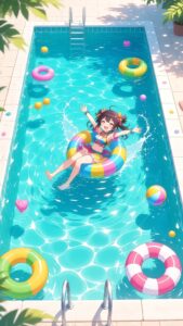 An incredible abstract-meets-leisure wallpaper. This overhead shot captures a person on an orange paddleboard in a vibrant blue pool. The sun catches the water, creating beautiful, swirling light and ripple patterns that transform the pool into a flowing work of art.
