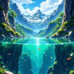 Dive into a vibrant world with this Anime Mountain Lake Split-View live wallpaper. This stunning HD visual offers a dual perspective: a majestic snow-capped peak under fluffy white clouds above, and a crystal-clear underwater canyon teeming with orange fish below. The lush greenery and bright blue tones make this wallpaper an eye-catching choice for fans of high-quality anime scenery. It transforms your phone into a peaceful, adventurous escape every time you unlock your device. 🏔️🐟