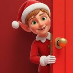The Animated Christmas Elf Peeking Holiday Live Wallpaper features a bright and cheerful helper from the North Pole. This charming animated wallpaper shows a young, smiling Elf wearing a classic red and green outfit and Santa hat, waving hello as they peek from behind a vibrant red door. The elf’s bright eyes and friendly wave convey the joyful spirit of Christmas, making this a perfect animated background for the festive season. ✨🧑‍🎄