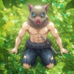 Inosuke Hashibira Beast Breathing Live Wallpaper captures the fierce and energetic Demon Slayer, Inosuke, in a vibrant, lush forest. He is shown with his signature boar’s head mask and shirtless physique, kneeling amidst the greenery, ready for action. The intense blue eyes and sun-drenched surroundings bring a wild, beautiful energy to this mobile wallpaper.