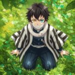 Obanai Iguro Serpent Hashira Live Wallpaper features the enigmatic Serpent Hashira, Obanai Iguro, kneeling within a bright, natural green setting. He is immediately recognizable by his mismatched eyes, facial bandages, black and white striped haori, and his white snake, Kaburamaru. The contrasting colors and striking details make this a distinctive and cool mobile wallpaper for any Demon Slayer enthusiast.