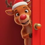 The Rudolph Reindeer Peeking Christmas Live Wallpaper is a charming and heartwarming addition to your holiday collection. This delightful animated wallpaper showcases a cute, cartoon-style reindeer, complete with a bright red nose and festive Santa hat, peeking out with an endearing smile from behind a matching red door. The reindeer’s gentle expression and the vibrant red background make this wallpaper a cheerful and engaging piece of Christmas cheer for your device.