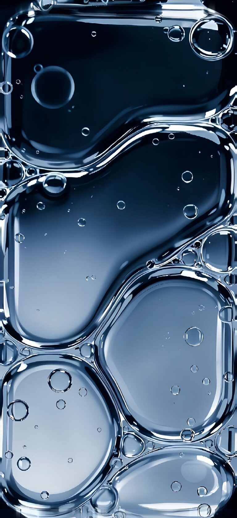 This Abstract Liquid Blue Bubble Wallpaper offers a clean and refreshing high-quality visual for any modern smartphone. The 4K image features macro photography of oil and water droplets, creating organic, flowing shapes with deep navy and cool steel-blue tones. It is a professional-grade, minimalist background that provides a calm, fluid aesthetic without distracting from your apps.
