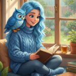 This Cozy Blue Hair Girl Reading Wallpaper radiates warmth and comfort, featuring a girl in a thick knitted sweater reading by a rain-streaked window. With a magical blue owl perched on her shoulder and a steaming cup of tea nearby, this digital art wallpaper is the ultimate “cozy core” aesthetic. It’s a wonderful choice for book lovers and fans of whimsical, lo-fi inspired artwork to decorate their home screens.
