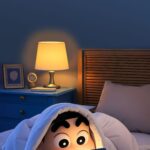 The Crayon Shin-chan Bedtime Phone Screen Wallpaper is a delightful and relatable 3D render featuring the iconic character Shin-chan (Shinnosuke Nohara) from the famous Crayon Shin-chan anime and manga series. This charming wallpaper captures a mischievous and cozy moment: Shin-chan is tucked under his white duvet, huddled on a pillow with blue and white stars, with only his wide-eyed face and a small blue phone visible, illuminated by the screen’s glow. The scene is set in his dimly lit bedroom, complete with a warm, glowing bedside lamp and a blue nightstand, highlighting a universal childhood experience of secretly staying up late. The 3D animation style gives the beloved 2D character a soft, modern, and highly appealing texture.