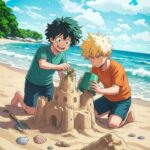 This adorable Young Bakugo and Deku Sandcastle Wallpaper depicts the two future heroes collaborating on a massive sand fortress. A perfect 4K phone wallpaper for those who find beauty in the origins of greatness, this scene shows a focused Bakugo and a cheerful Deku in their element. The high-resolution details of the sand, shells, and sparkling waves make this a visually rich experience for any My Hero Academia fan. This wallpaper serves as a constant reminder of the humble beginnings of UA’s top students, captured in a bright and hopeful art style.