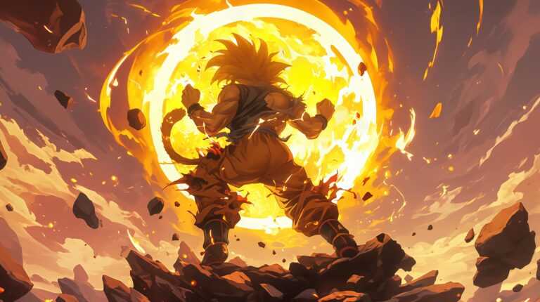 Feel the incredible energy of the Saiyan race with this Dragon Ball Z Goku Super Saiyan Desktop Wallpaper. This HD scene captures Goku from behind as he powers up into a legendary transformation, surrounded by a massive, glowing golden aura that lights up the sky. Perfect for fans of the DBZ series, this high-quality 4K wallpaper depicts the raw power and intensity of Earth’s greatest protector. Enhance your desktop or phone experience with this vibrant illustration of burning ki and shattering rocks, designed to inspire strength and determination every time you look at your screen.