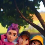 Get the full squad with this K-Pop Demon Hunters Huntrix Trio Wallpaper featuring Rumi, Mira, and Zoey. Caught in a candid moment under the trees, this high-quality anime-style background captures the unique personalities of the demon-hunting idols. It’s a perfect 4K phone wallpaper for fans of the movie and the Huntrix group. 🌳✨