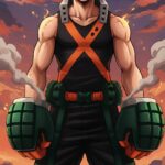 Ignite your screen with this Katsuki Bakugo Explosion Murder Wallpaper, featuring the explosive rival from My Hero Academia. Standing defiantly against a sunset sky, Bakugo is seen in his hero costume with smoke rising from his grenade-style gauntlets. This wallpaper perfectly captures his “King Explosion Murder” persona and fierce competitive drive.