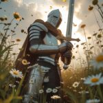 This Knight Praying with Sword Wallpaper is a powerful symbol of faith and duty, showing a knight holding his blade upright amidst a flurry of falling petals. The low-angle shot and sun-streaked clouds make this high-quality 4K wallpaper feel larger than life. Use this high-quality phone wallpaper to give your device a sense of purpose, strength, and spiritual resolve.