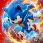 Experience the ultimate speed of the Blue Blur with this Movie Sonic Fire and Lightning Wallpaper. This high-octane 4K phone background features the live-action version of Sonic the Hedgehog surrounded by a swirling vortex of orange flames and crackling blue electricity. Perfectly optimized for high-resolution displays, this dynamic artwork captures the intense action and energy of the iconic SEGA hero in a cinematic style.