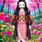 This Nezuko Kamado Aesthetic wallpaper portrays the adorable and powerful sister of Tanjiro in her pink hemp leaf pattern kimono. Standing on a stone path surrounded by a magical forest of roses, Nezuko’s gentle spirit shines through despite her demon form. Use this wallpaper to bring a touch of sweetness and beauty to your device.