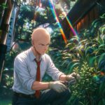 Saitama Gardening in Suit Wallpaper showcases the “One Punch Man” protagonist in a surprisingly domestic and focused light. Dressed in a professional white shirt and tie, Saitama is seen carefully pruning bushes under a brilliant, lens-flare sun. This wallpaper perfectly captures the character’s signature deadpan expression and simplicity, mixed with high-detail environmental art, making it a must-have for OPM fans who appreciate Saitama’s mundane daily life.