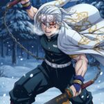 Tengen Uzui Sound Hashira Wallpaper is a flash of pure flamboyance and power set against a frozen winter landscape. This high-resolution phone wallpaper features the God of Festivals, Tengen Uzui, wielding his massive dual cleavers in a snowy forest at night. The contrast of his silver hair and bright gems against the deep blue of the winter night makes for a very “flashy” visual experience. For anyone who loves the Entertainment District Arc, this wallpaper brings a bold, muscular, and heroic presence to your lock screen.