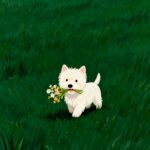 Bring home a digital pet with this Westie Puppy Green Grass wallpaper. This high-quality 4K image features a fluffy West Highland White Terrier carrying a bouquet of wildflowers through a deep green meadow. The painterly texture and vibrant natural colors provide a refreshing and calming aesthetic for your home screen. This HD phone background is perfect for dog lovers who want a touch of elegance and cuteness every time they unlock their device.